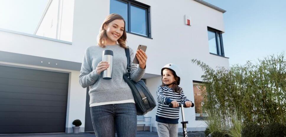 Mit gutem Gefühl das Haus verlassen dank Busch-secure@home. Das System lässt sich via Handy steuern und funktioniert kabellos. Da lässt sich die Außensirene problemlos überall anbringen