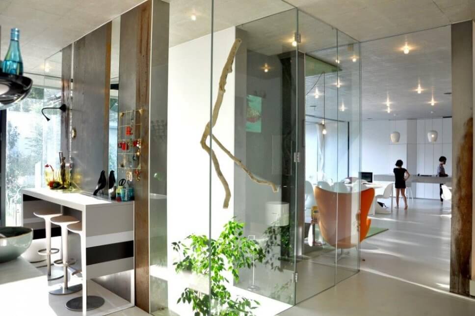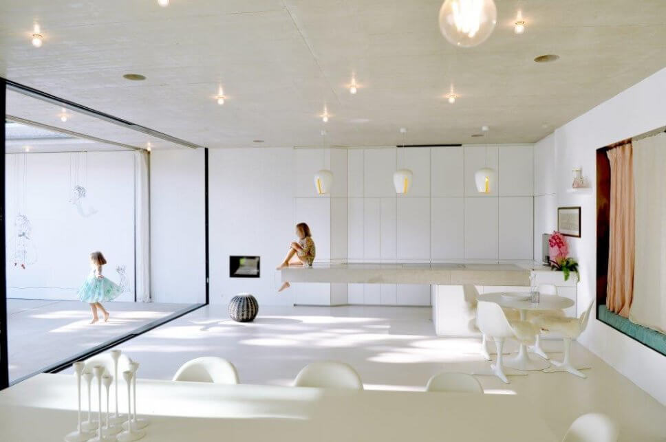 …das Baumaterial Sichtbeton zieht sich wie ein roter, Pardon grauer Faden durch das gesamte Haus…