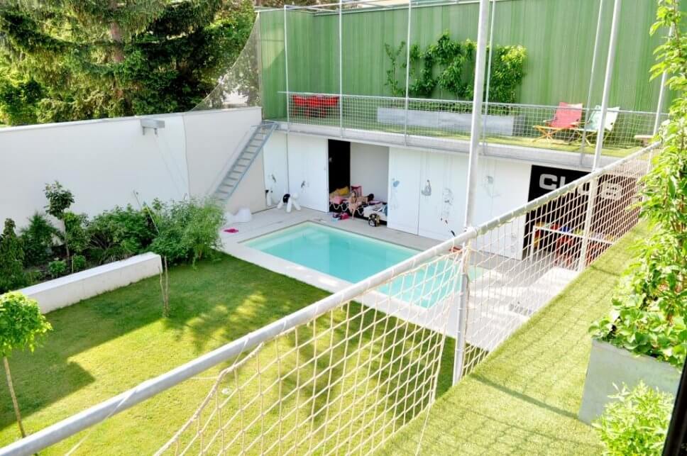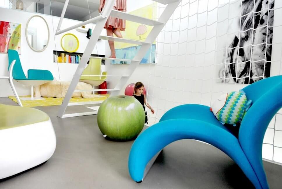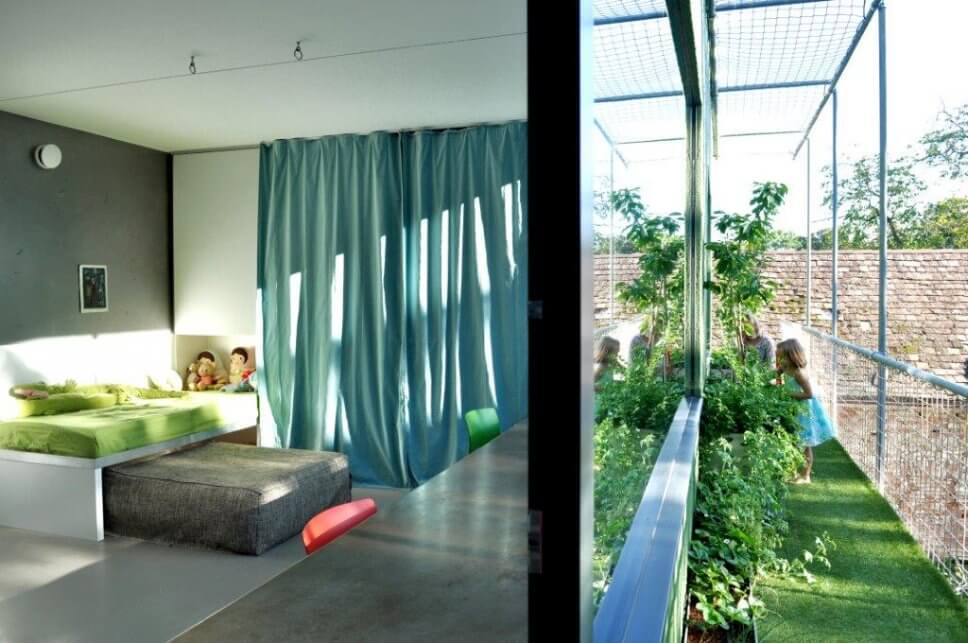 …zur Sicherung finden sich im Kinderhaushalt überall Netze, die auch die Brüstungen auf den offenen Ebenen sichern…