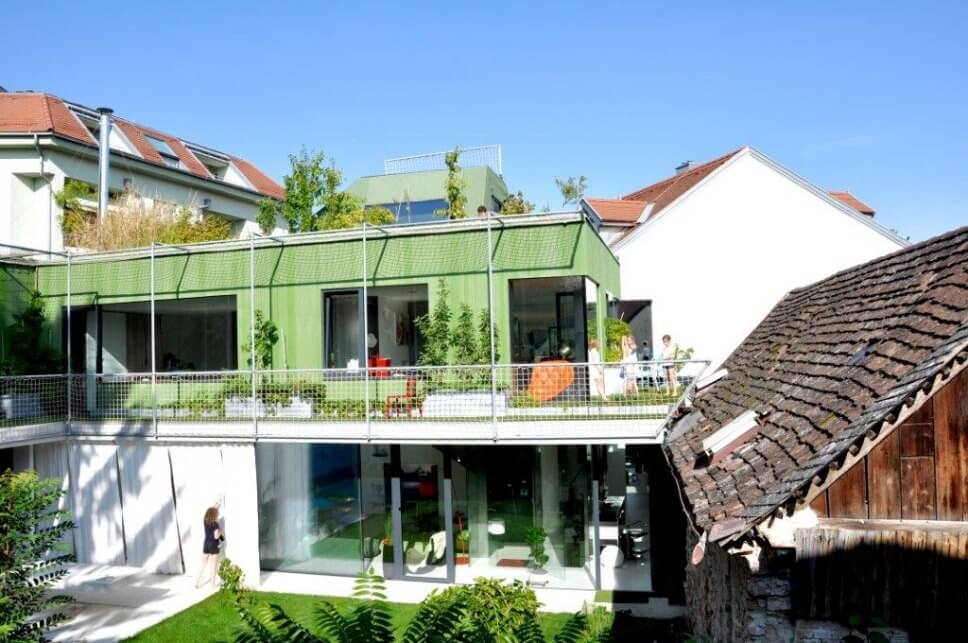 Im Garten eines alten Winzerhaus in Baden baut Caramel architekten ein Familiendomizil der besonderen Art, das Haus Marie. Um nicht mit der nostalgischen Heurigenatmosphäre zu konkurrieren, vielmehr gerade diese ins Wohngefühl des Neubaus einzufangen, übertragen die Wiener Planer die Gartenstimmung auf sämtliche Ebenen. Es entsteht ein offenes Haus, das drinnen und draußen vereint, vom Grün und dem kunterbunten Interieur der fünfköpfigen Familie lebt.