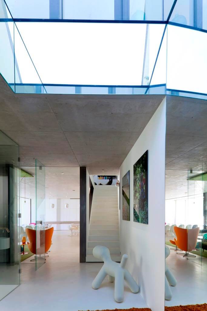 …das Erdgeschoss ist eine in jeder Hinsicht offene Fläche, auf welcher lediglich die durchgehende Glasfassade einen Kalt- und einen Warmbereich definiert…