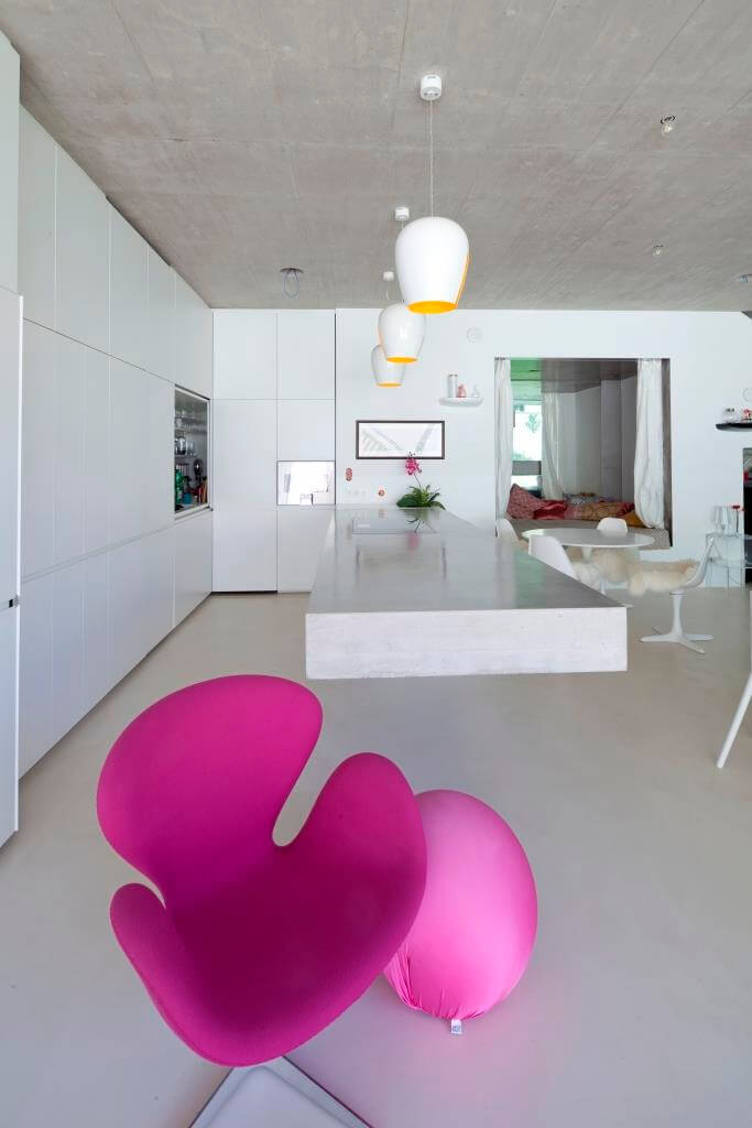 …der Aufsehen erregende, freistehende Betonblock, der als Kochinsel dient, ist direkt am Ort gegossen worden…