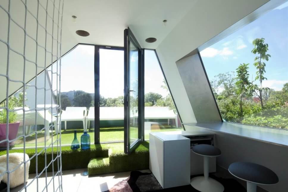 …wie ein Ausguck thront ein Arbeitszimmer mit kleiner Terrasse hoch oben unterm Dach…
