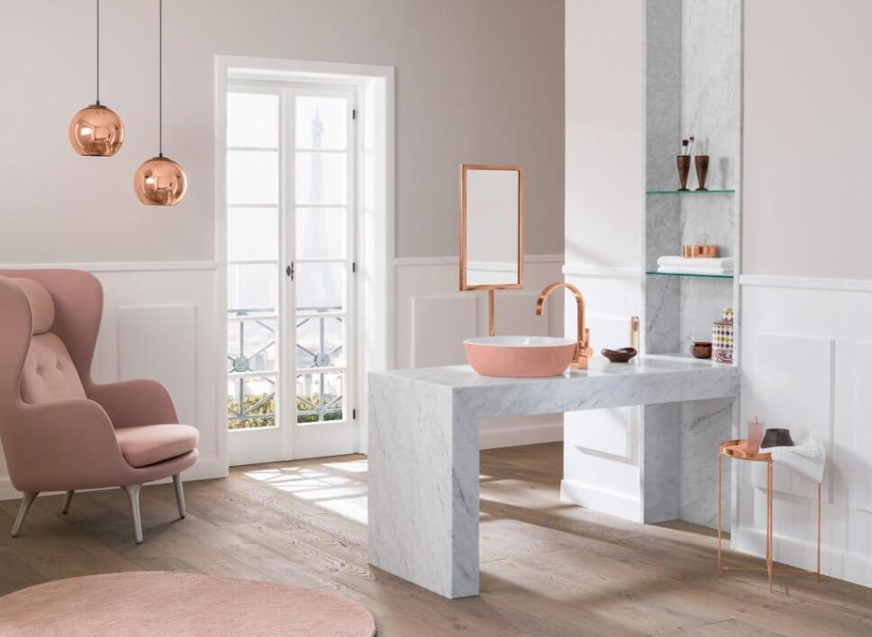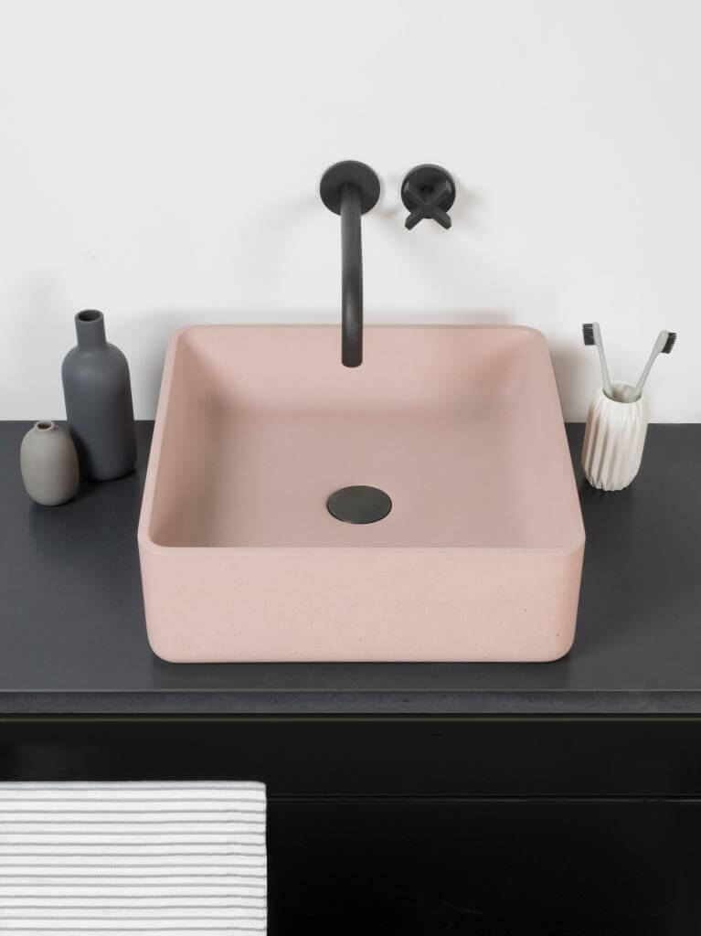 Betonspezialist Kast taucht seinen fast schon archaischen Waschtrog Arlaa in sanftes Rosé…