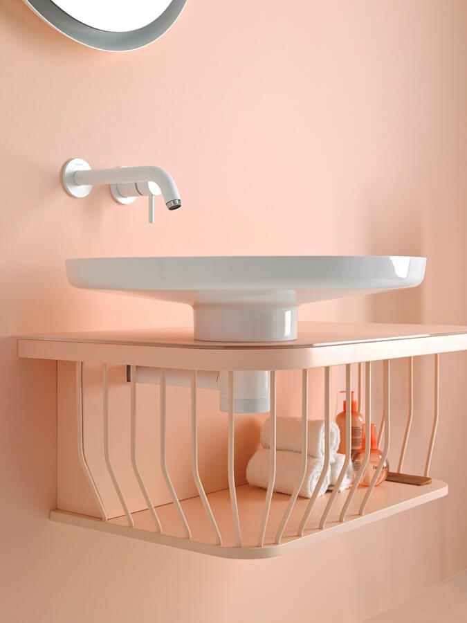 Kartell by Laufen vereint grazile Keramik mit fast schon zerbrechlich wirkendem Kunststoff in starken Farben