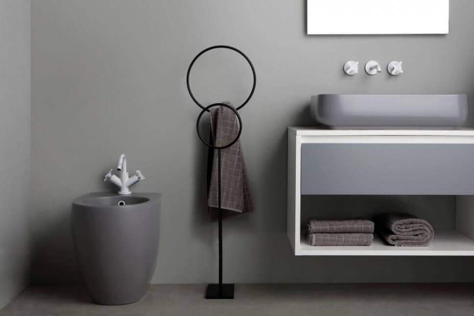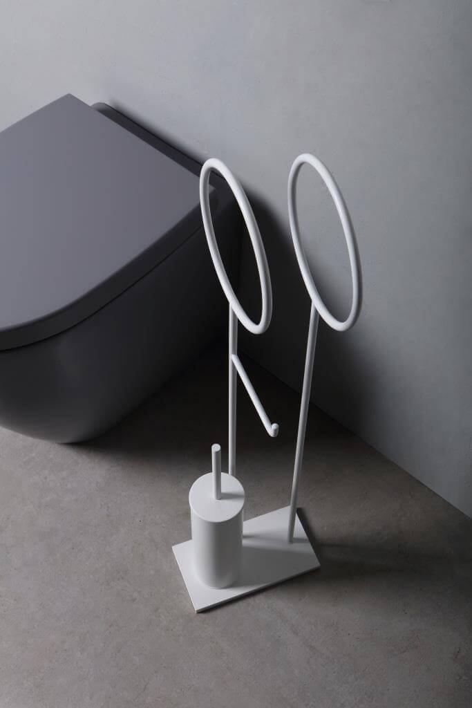 …die einfache Kreisform dominiert Moon. Die Accessoireserie hält wahlweise Handtücher, Toilettenpapier und / oder –bürste