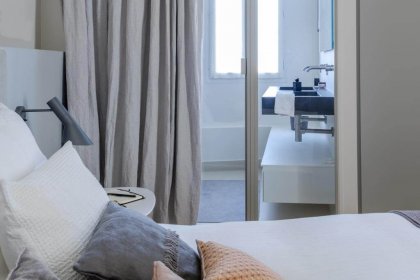 Ein freistehender Waschtisch wie BetteArt Monolith lebt von seiner bewussten Inszenierung im Bad. Sein skulpturaler Charakter macht den Waschplatz zur Bühne