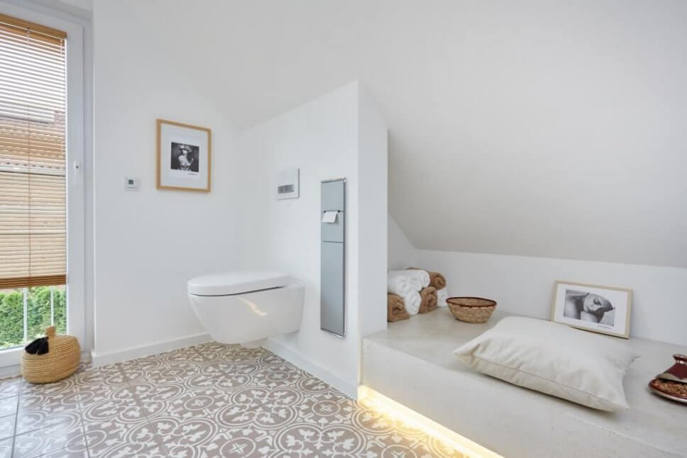 Unterm Dach des Einfamilienhauses von Ehepaar Belfqih entsteht ein großzügiges Badezimmer…