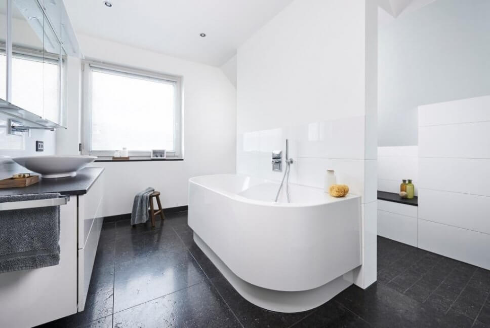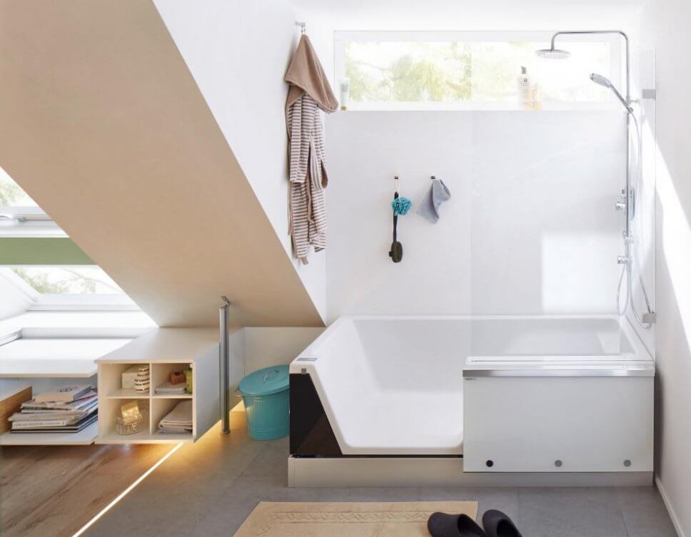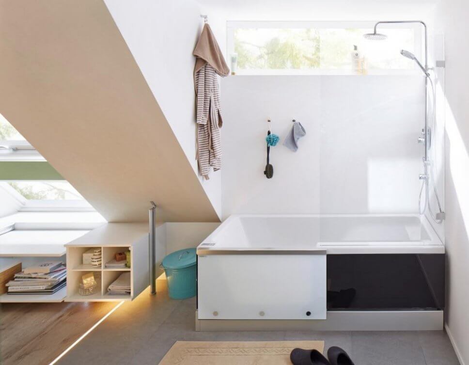 …ihr hat es vor allem das offene Bad in ihrem neuen Heim angetan. Denn trotz der geringen Fläche bietet es Dusche und Badewanne zugleich. Der Trick: eine Duschbadewanne aus dem Hause Repabad…
