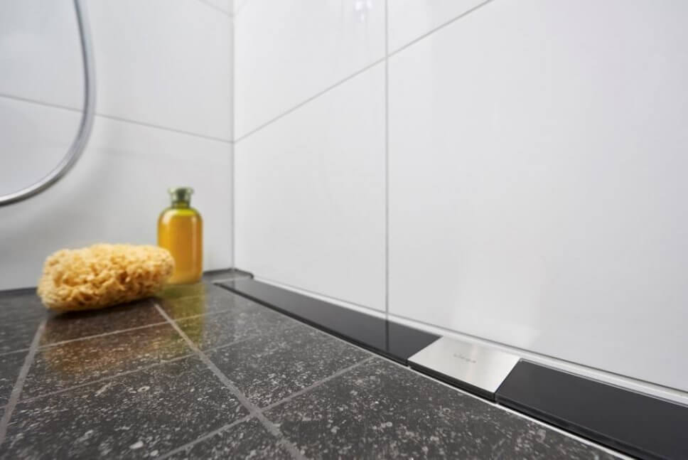 …um genug Raumhöhe für die Dusche zu gewinnen, wird diese bodengleich ausgeführt. Viegas Advantix Duschrinne nimmt sich mit ihrem Designrost aus schwarzem Einscheibensicherheitsglas optisch dezent zurück…