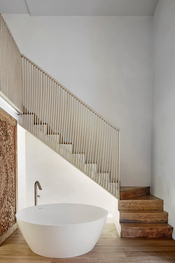…natürliche Materialien bestimmen die Suiten wie traditioneller Kalkstein, Hanfseile, Schalter und Armaturen aus Edelstahl, gealtertes Leder, Leinen…