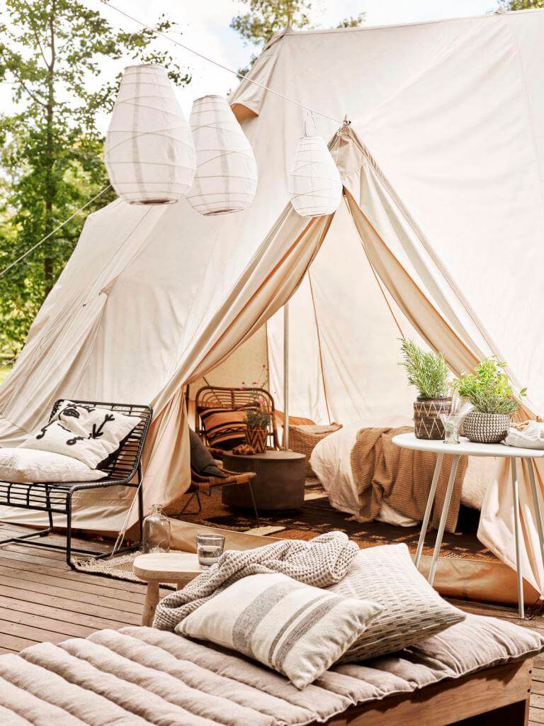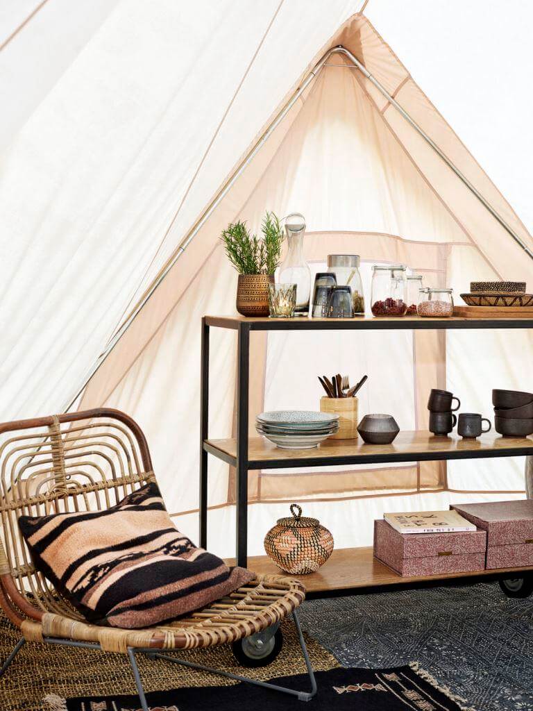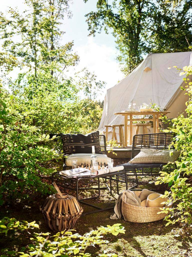 Raus in die Natur, aber bitte mit allem Komfort! Auch unterm freien Himmel wollen wir es schön, bequem und gern auch ein wenig luxuriös haben. Glamping heißt der Urlaubstrend, der Camping und Glamour vereint – Keramik statt Plastikteller die Devise. Das Kuschelbett ersetzt die Luftmatratze, kommodes Gestühl die Klappware. Erste Interieurlabel bringen das exquisite Ferienflair jetzt auch in unsere Gärten und Häuser.