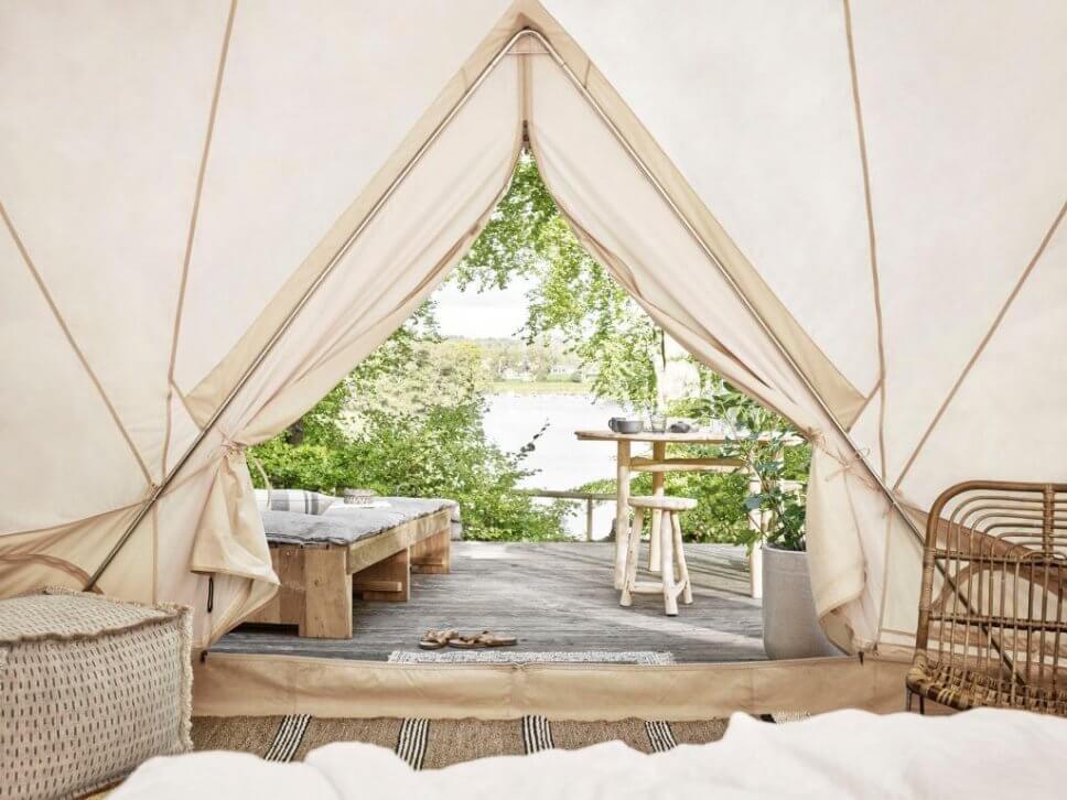 Das Interieurlabel House Doctor hat sein Luxuszelt an einem See aufgeschlagen…
