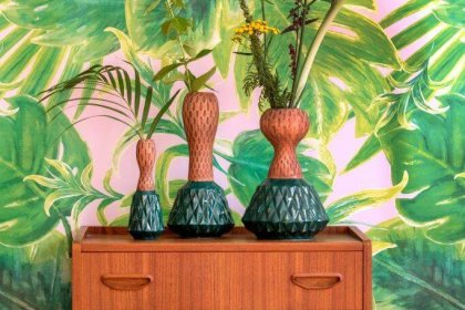 …die Blumendesigns der Textilien zieren auch die neuen Tabletts, die Lisa Corti in Vietnam per Hand fertigen lässt…