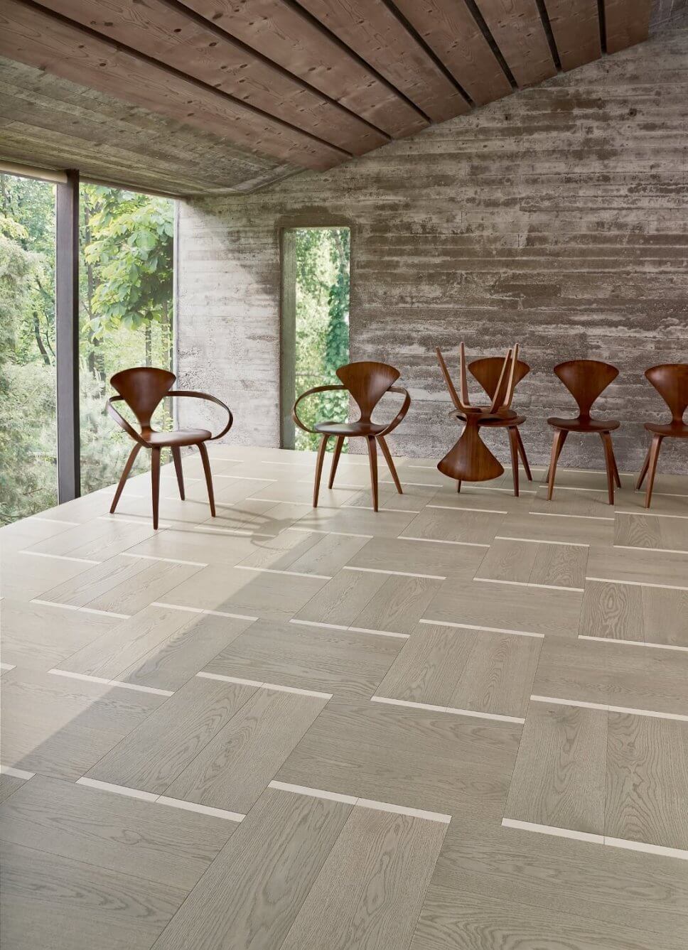 …Gestalter Marc Sadler hingegen verpasst seinem Fabrique-Parkett für die Italiener eine kreuzweise Abreibung mit der Bürste…