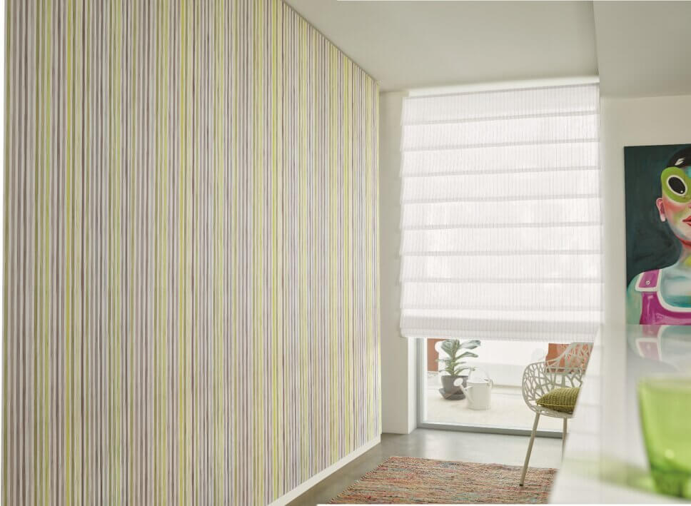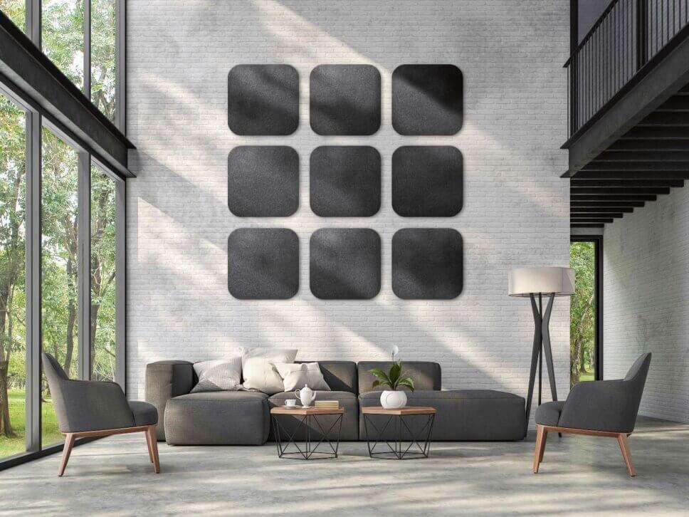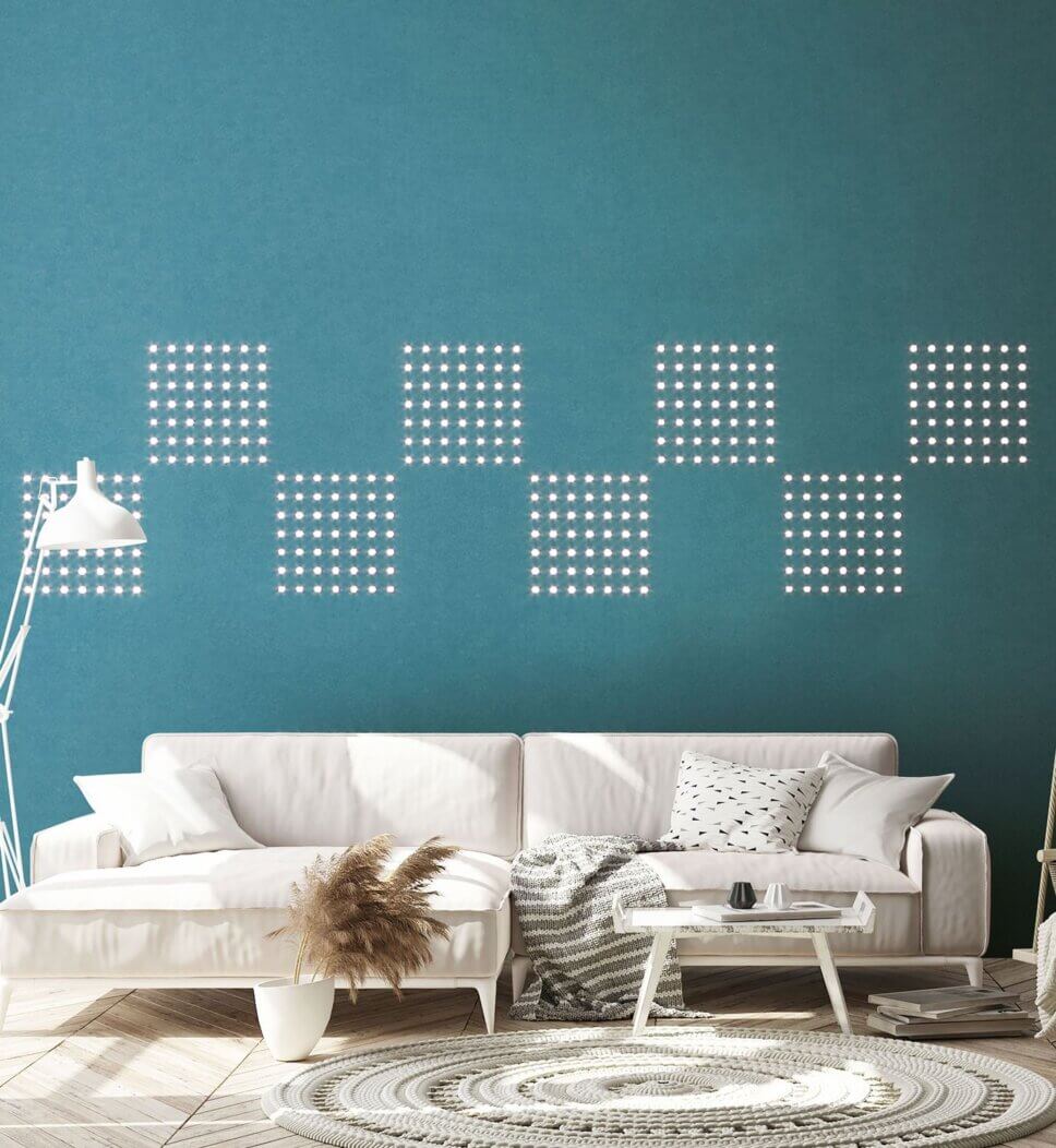 …ob vollflächig über die ganze Wand oder nur als Aufsehen erregender Akzent, sie verbessert die Akustik im Raum. Eine Moltonschicht zwischen Tuch und Wand wirkt zudem Wärme isolierend