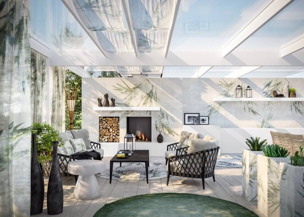 …Muster und Motive drucken die Italiener auf Fibratex, einem mit Tex-Dekor-Mattharz behandeltem Glasfasergewebe. Das macht die Open Air-Tapete witterungsbeständig…