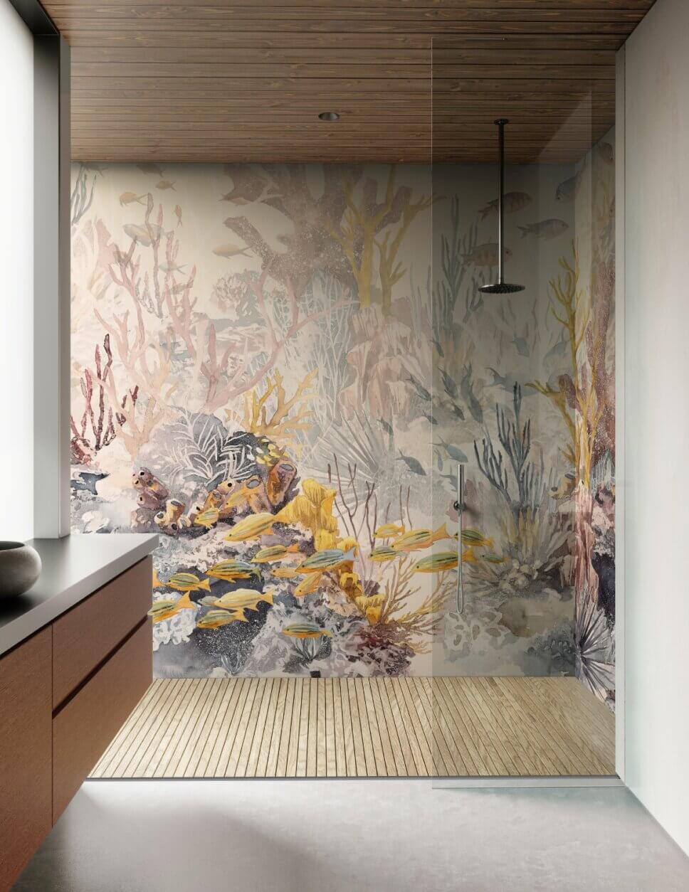 …die Italiener bringen mit Wallpepper H2O eine speziell behandelte Tapetenkollektion heraus, die alles andere als wasserscheu, im Gegenteil fürs Badezimmer gemacht ist
