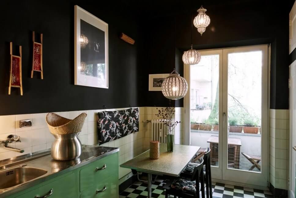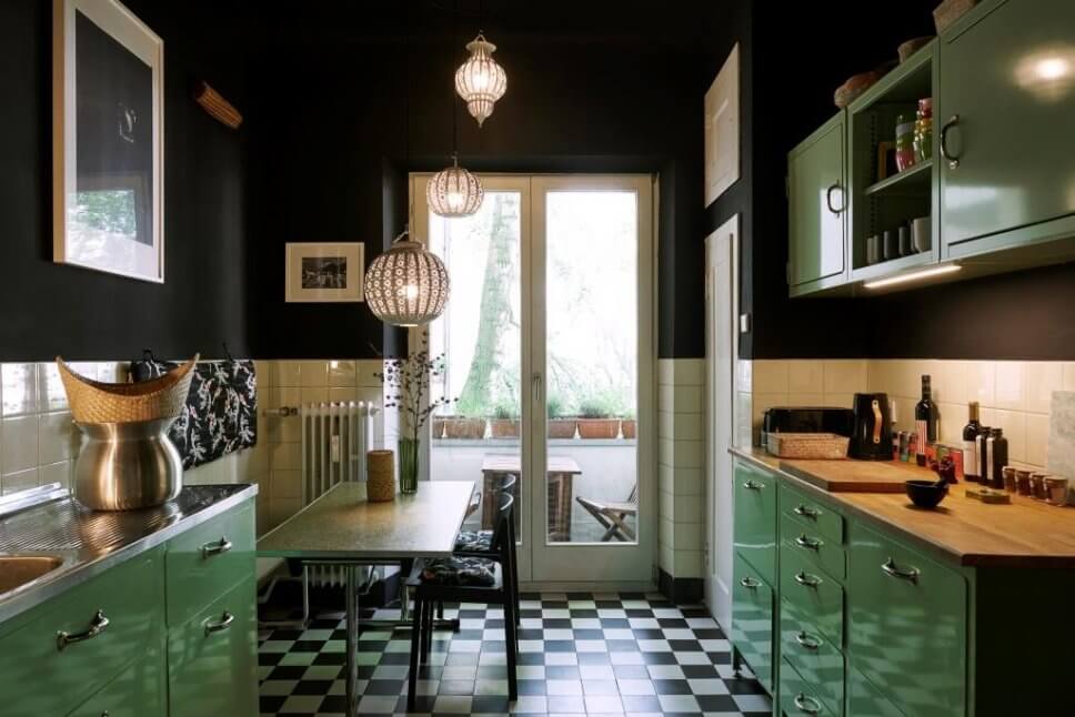 …Tribute to Vinyl (No 10), ein modernes graphisches Vinylschwarz, gibt der Küche ein dunkeldramatisches Farbstatement, verleiht ihm zugleich auch Ruhe…