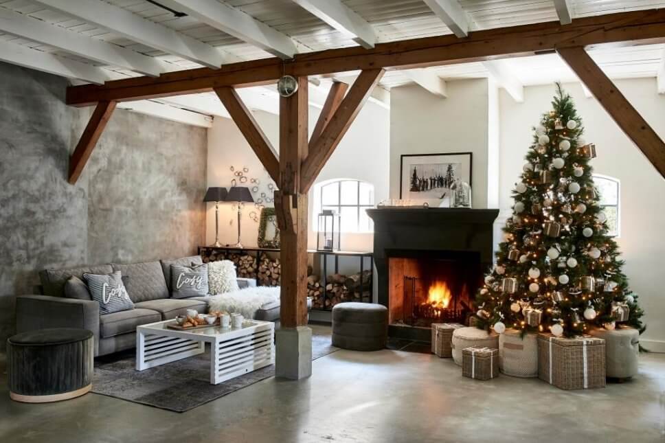 Mit einem Minibäumchen im Topf auf dem Kaminsims, Dekotannen und Girlande zelebriert Bloomingville das Weihnachtsfest…