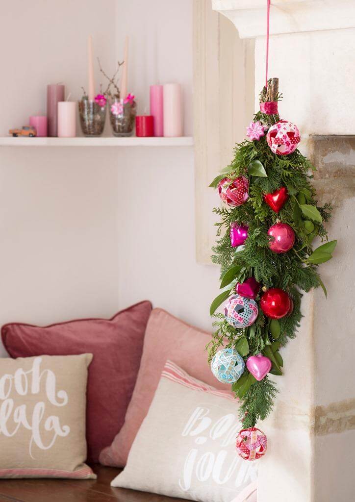 …der übrige Baumschmuck hängt zusammen mit schönen Lederquasten von der Decke, eine ungewöhnliche und doch bezaubernde Deko-Idee