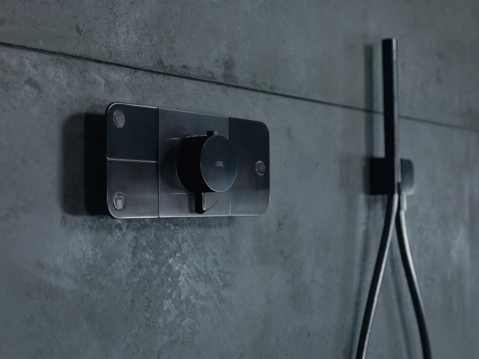 …für Axor führen die beiden Briten die wichtigsten Bedienelemente für die Dusche in einem Armaturenkörper zusammen. Und so nennen sie ihren Entwurf auch schlicht One…