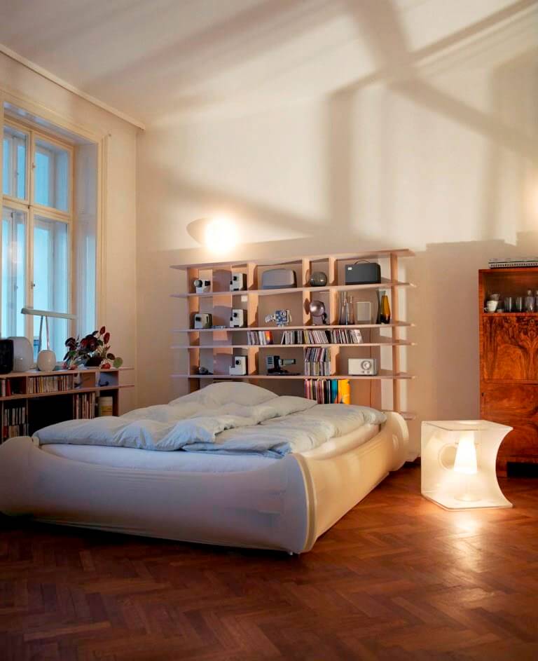 Bett und Leuchte bespannt Architekt Georg Ihm (Produktmanufaktur) mit einem Stretchstoff