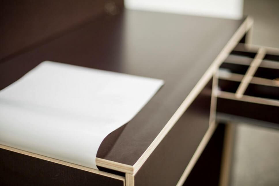 Grafische Möbel mit wunderbaren Oberflächen aus Linoleum und Kautschuk entstehen in Heilbronn bei performa