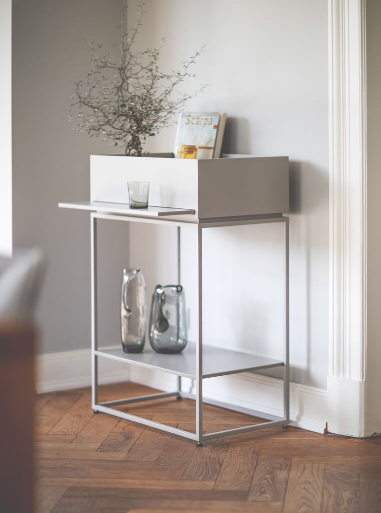 Unter ihrem Label lisafardiDESIGN lässt die Gestalterin geradliniges Mobiliar mit vielseitigen Funktionen fertigen wie die Pflanzenkrippe