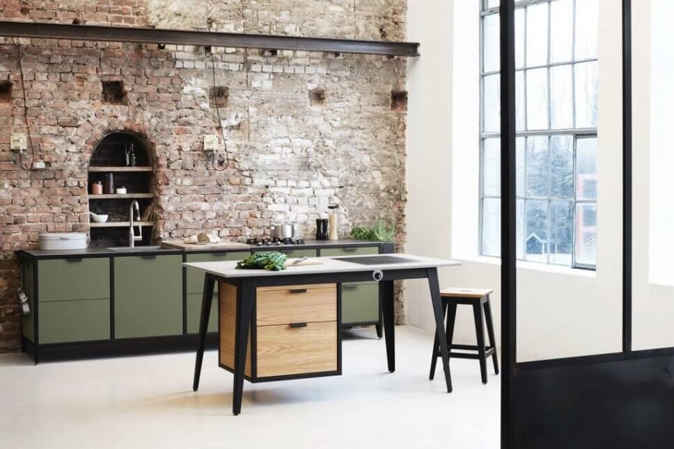 Der Mix von Metall mit Holz, Linoleum und anderen natürlichen Werkstoffen macht’s bei Jan Cray Möbel & Küchen