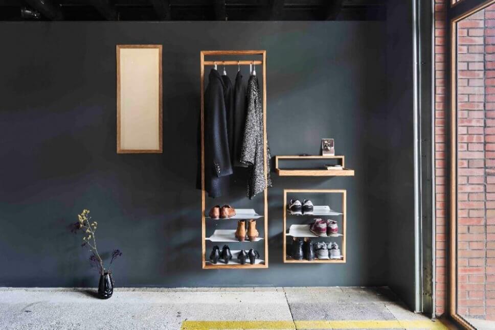 Trotz massivem Eichenholz scheint die gardero-b des Hamburger Labels das kleine b an der Wand zu schweben