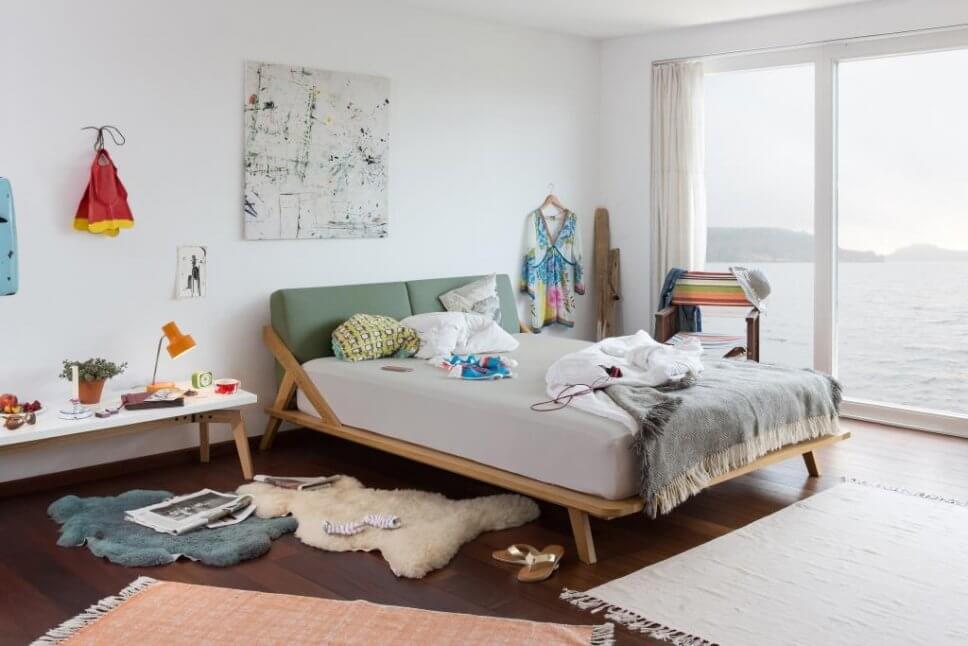 Heimische Eiche ist das Holz, aus dem Jannis Ellenbergers Nordic Space Bett gemacht ist