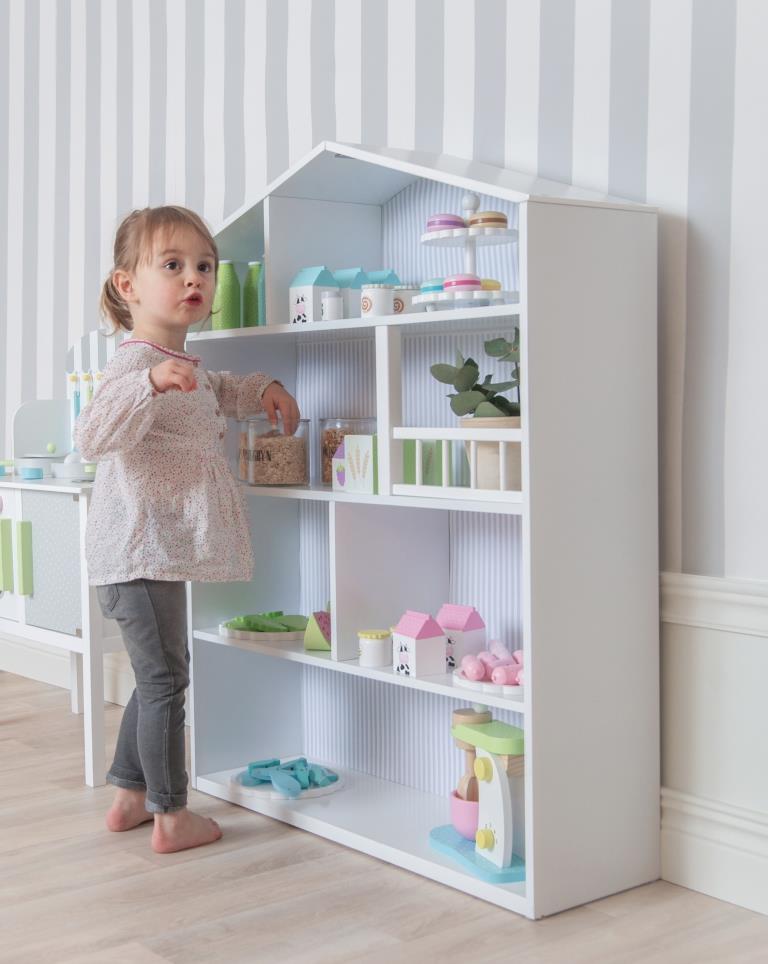 Das Setzkastenregal von JaBaDaBaDo lässt sich wunderbar als Kaufmannsladen oder Puppenhaus zweckentfremden, verstaut aber auch Bücher, Spiele und anderen Kleinkram…