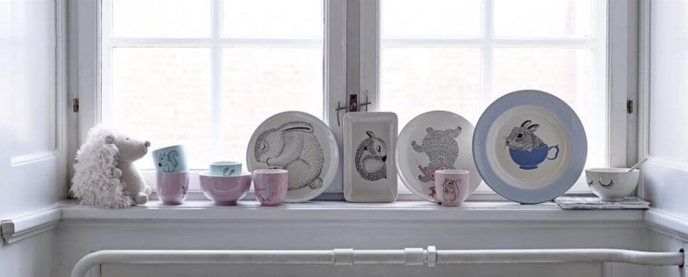 Nanna Asmussen holt den ganzen Wald auf die Kindertafel. Die liebevoll illustrierten Rehe, Häschen und Füchse geben sich auf Gläsern und Keramik von Bloomingville ein Stelldichein