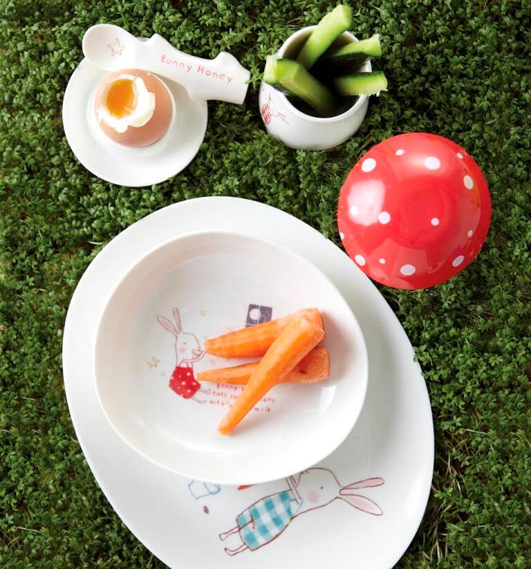 Mailegs schon berühmte Bunnies erzählen auch auf Melamin schönste Geschicheten, hier The Carrot Story