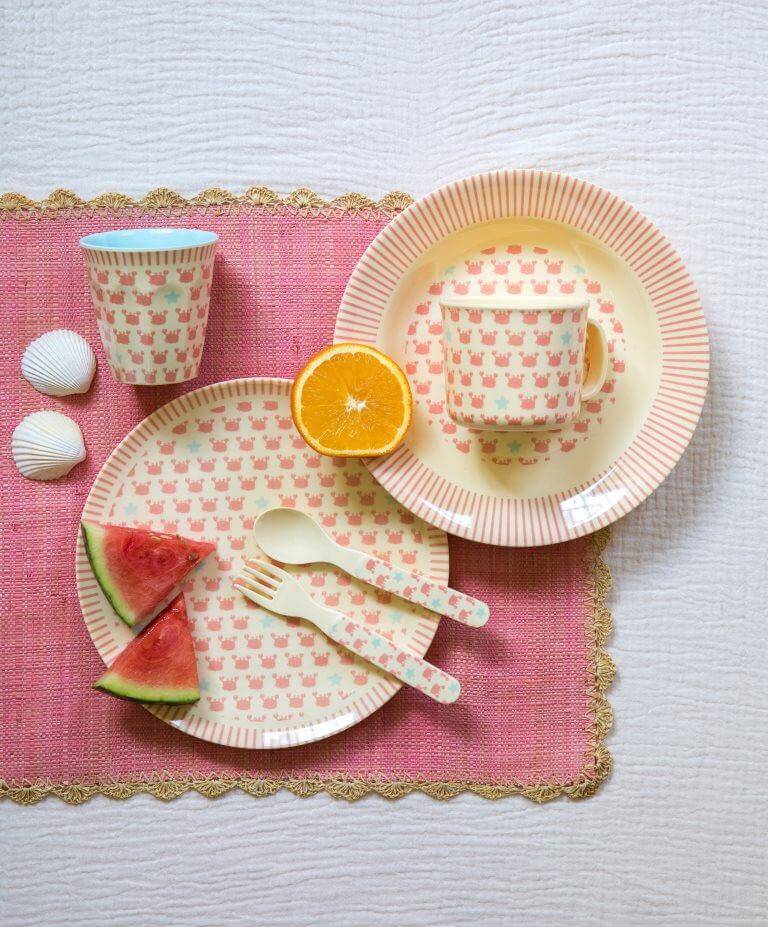 …sie zieren Tischwäsche, Geschirr und das Yummy Plus Easy Grip-Besteck. Das liegt mit seinen Silikon-Griffen perfekt in kleiner Hand