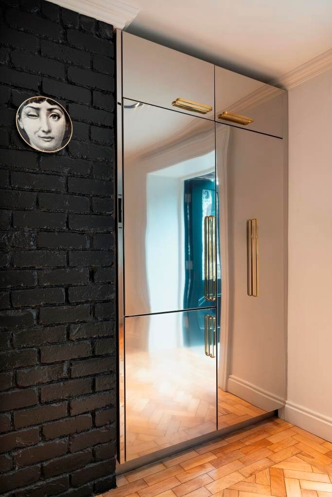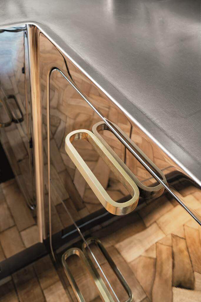 …analog der abgerundeten, bündigen Türen stattet Abimis diese mit ebenso geformten, großen Griffen in Messingfinish aus…