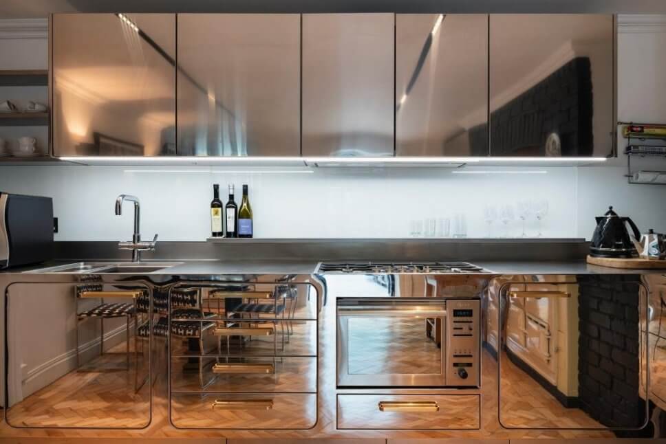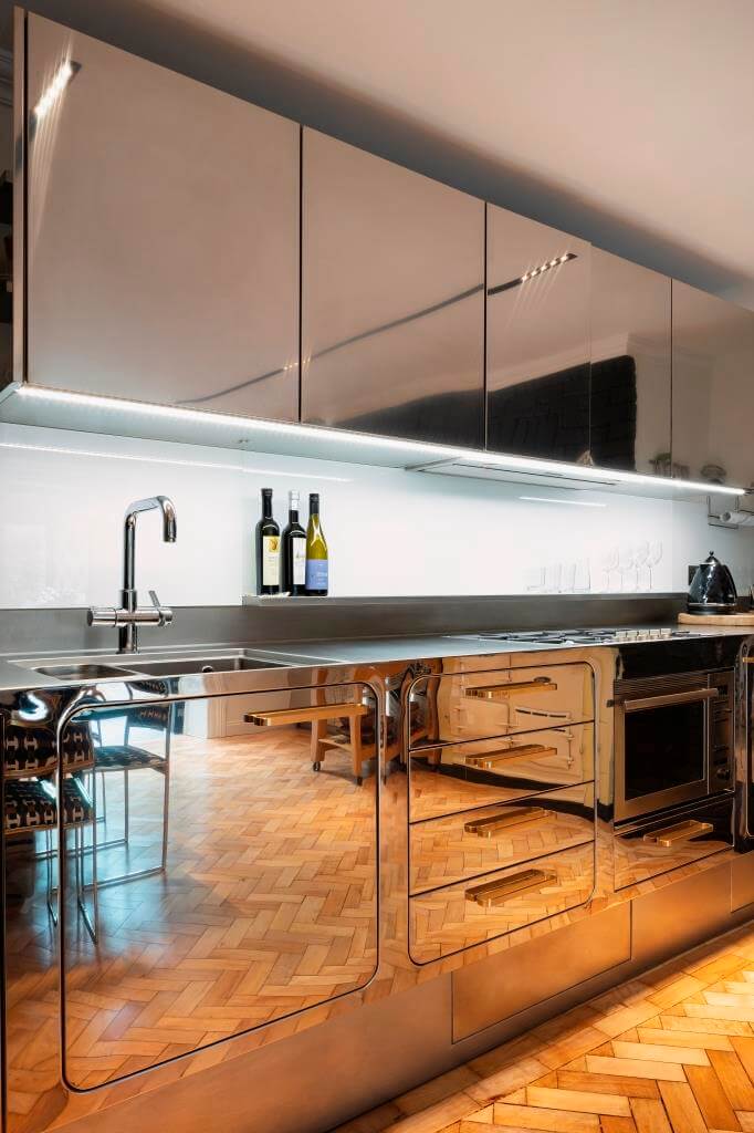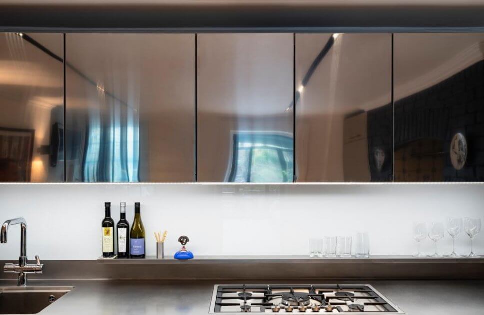 …in dem glänzend polierten Edelstahl der italienischen Küchenzeile spiegelt sich nicht nur das Interieur wider. Er reflektiert auch wunderbar das Tageslicht, das durch den Wintergarten hereinfällt…