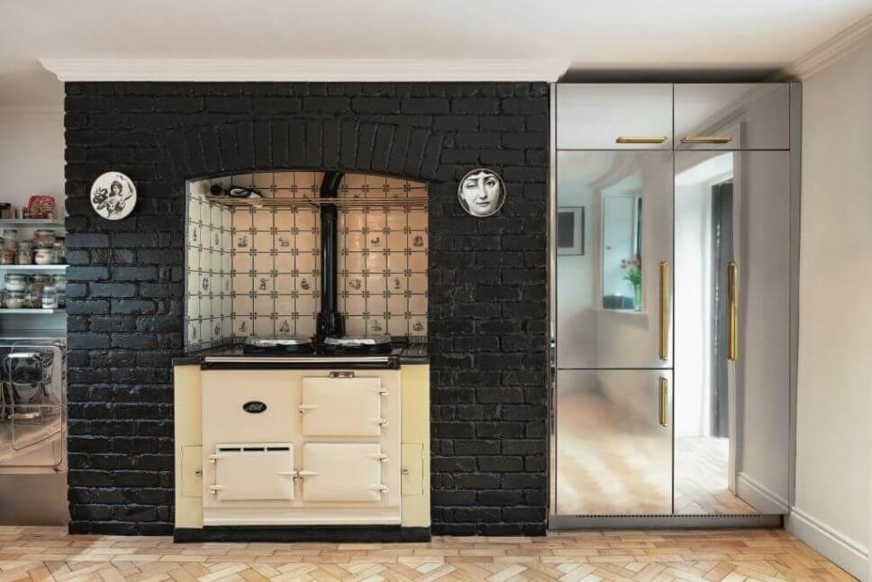 …als Reminiszenz an die Vergangenheit bleibt die einstige Kochnische erhalten, gekrönt sogar noch von einem Range Cooker aus dem Hause Aga…