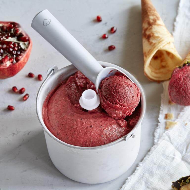 …liefert dafür aber auch binnen einer Stunde köstliches Himbeer-Sorbet, aber auch Sahneeis auf Knopfdruck