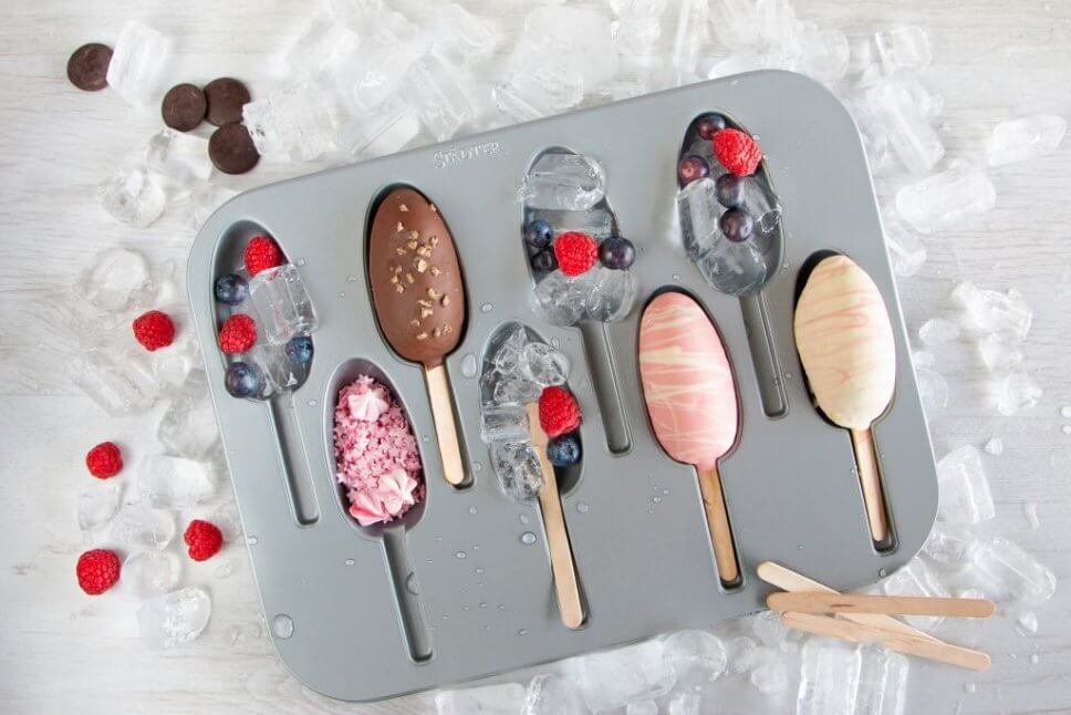Die Metallbackform Cake Lollies von Staedter lässt sich im Sommer hervorragend zweckentfremden und mit Eiscreme und Holzstielen bestücken…