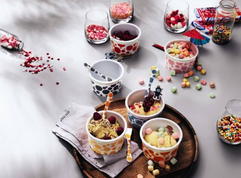 Die Temperaturen steigen. Endlich Eiszeit! Am leckersten ist zweifelsohne selbstgemachte Eiscreme. Für Vielschlecker lohnt eine Maschine, lassen sich doch mit ihr ruckzuck die köstlichsten Sorten zubereiten. Inzwischen gibt es solche Gerätschaften auch in haushaltsüblichen Größen. Eis am Stiel lässt sich aber auch fix mit Formen im Gefrierfach zaubern. Das große Plus der hausgemachten Schleckerei: Hier hat der Eismacher selbst in der Hand, was er gefrieren lässt – eben natürliche Kompositionen frei von Zusätzen und Konservierungsstoffen. Perfekt, werden die eigenen Kreationen dann auch noch in passenden Schälchen serviert.