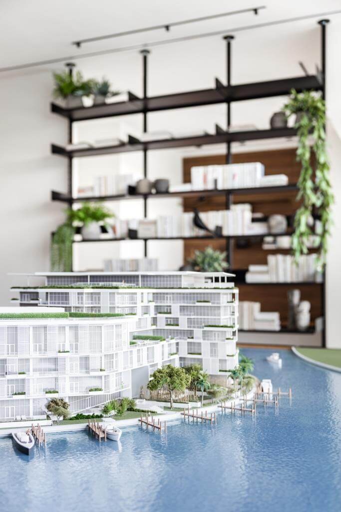 …ein Architekturmodell zeigt im Muster-Apartment die Anlage en Miniature an Floridas Küste…