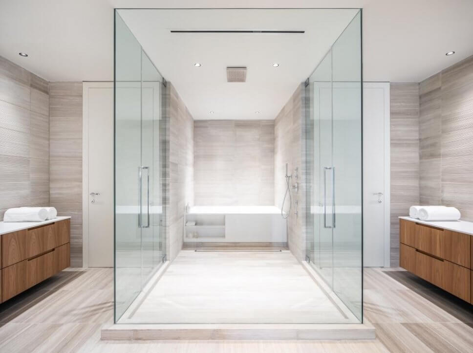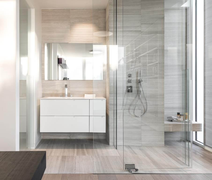 …und stellt eine Walk-In-Dusche ins Zentrum. Diese stattet er wie alle Bäder mit Armaturen von Dornbracht aus…