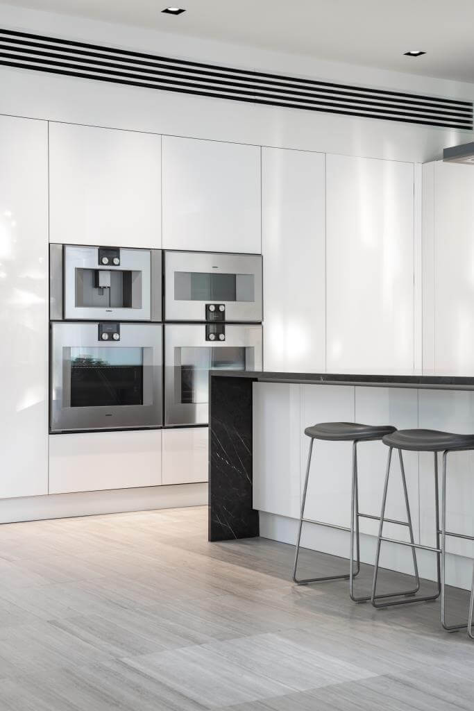 …die Geräte aus dem Hause Gaggenau verschmelzen geradezu mit der puristischen Küche…