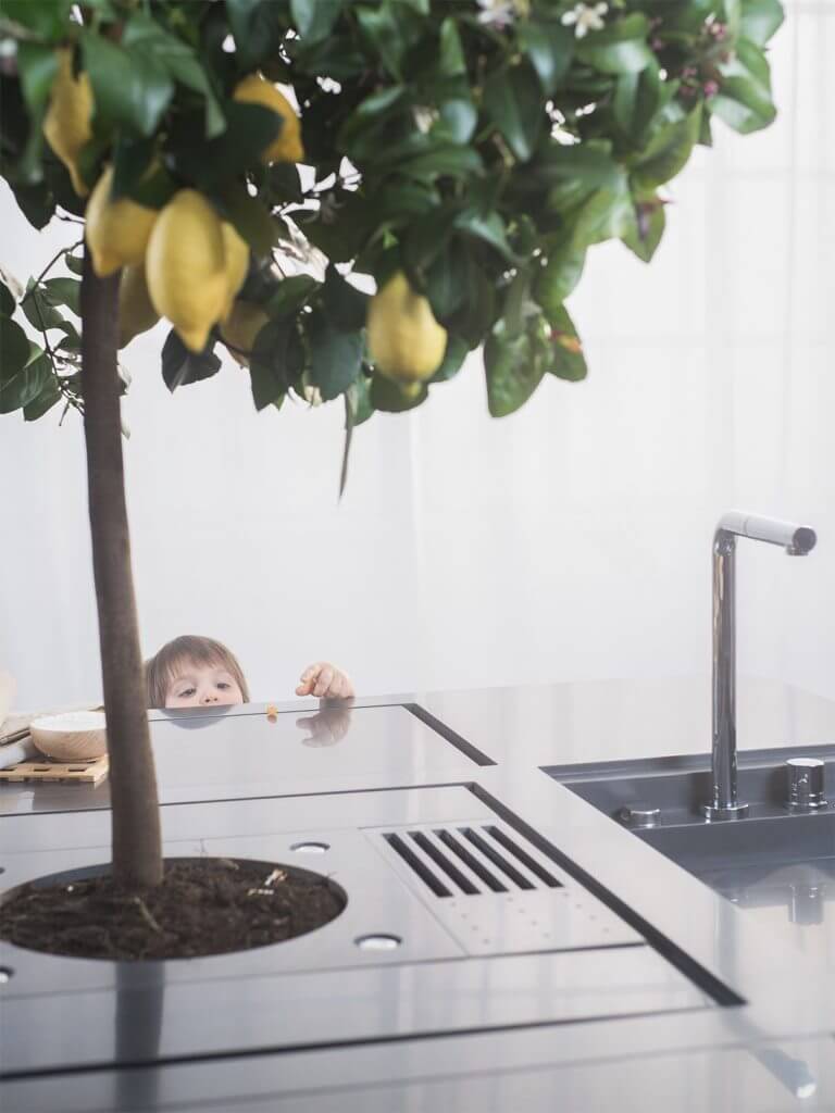 Mit Oasi holt Architekt Stefano Boeri die Natur ins Haus, genauer einen Zitrusbaum mitten in den Küchenblock…