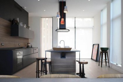 …nach dem Brutzeln verschwindet die Küche samt Abwasch hinter dezenten Falttüren