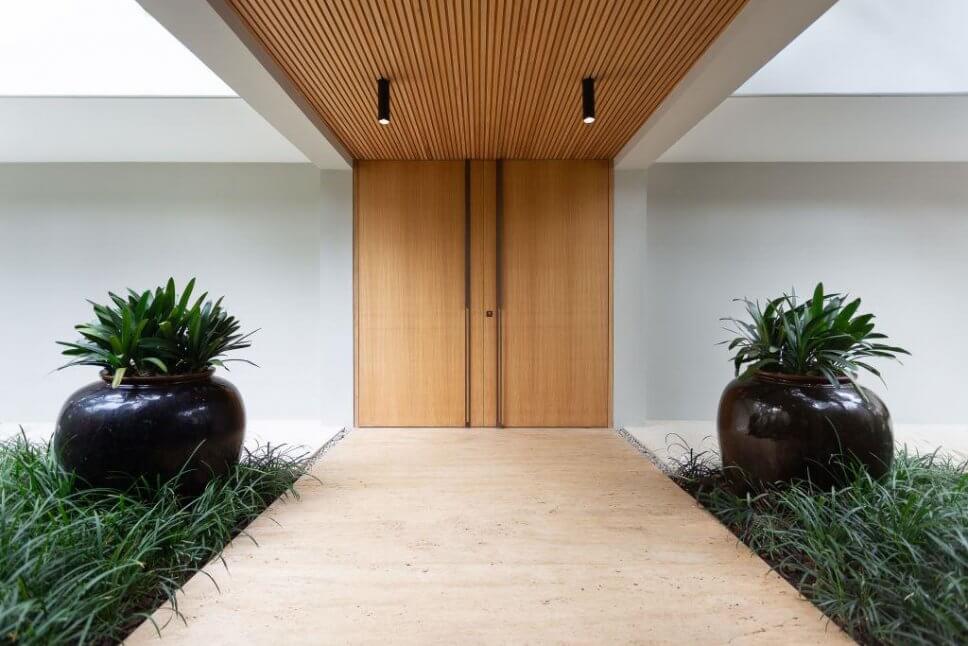 …die sanfte Ästhetik von warmen Holzvariationen ist das raumübergreifende Element dieses offenen, modernen Baus…