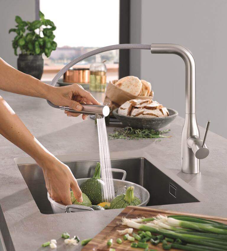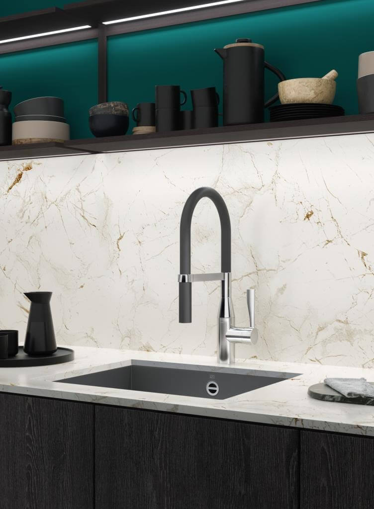 …die Flex-Variante statten die Niederländer mit einem patentierten Zugauslauf aus, der das Abwaschen großer Schneidbretter oder das Füllen von Vasen erleichtert
