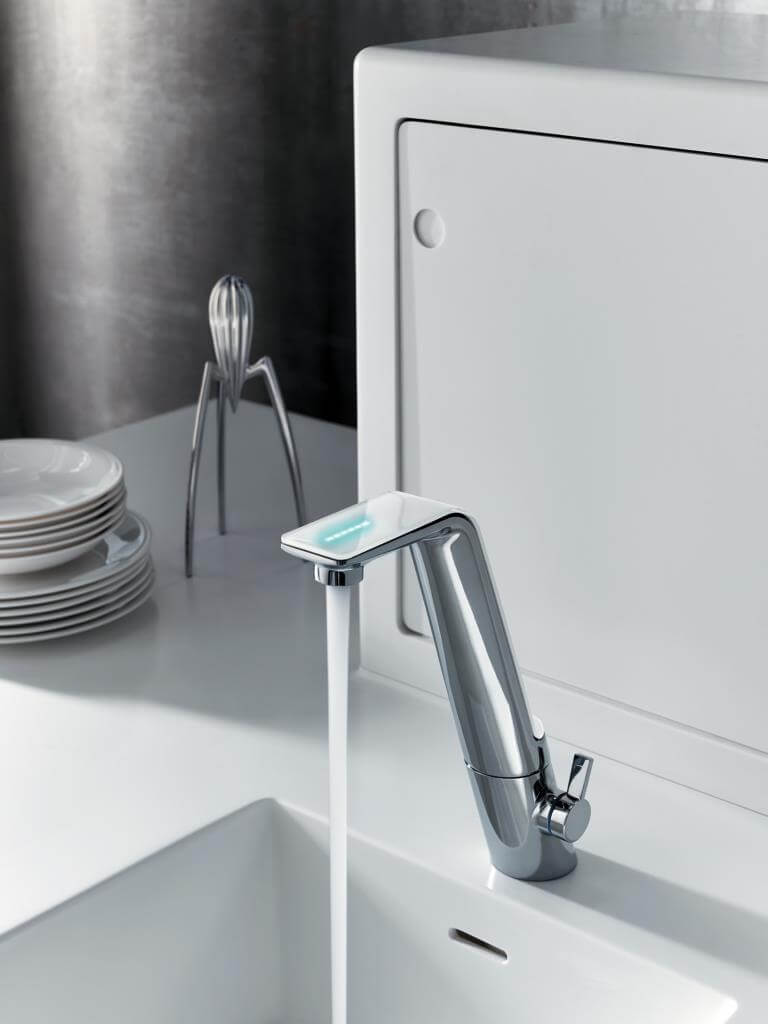 Wasser marsch per Fingertipp auf dem semi-transparentes Touch-Pad. Der Entwurf stammt aus der Kooperation der Designschmiede Alessi mit Hansa